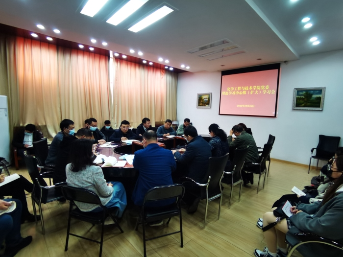 10月26日,我院党委在化工馆二层会议室组织召开理论学习中心组(扩大)学习会,学院党委理论学习中心组成员、各支部书记、系(所、中心)负责人参会,院党委书记张琤主持会议。