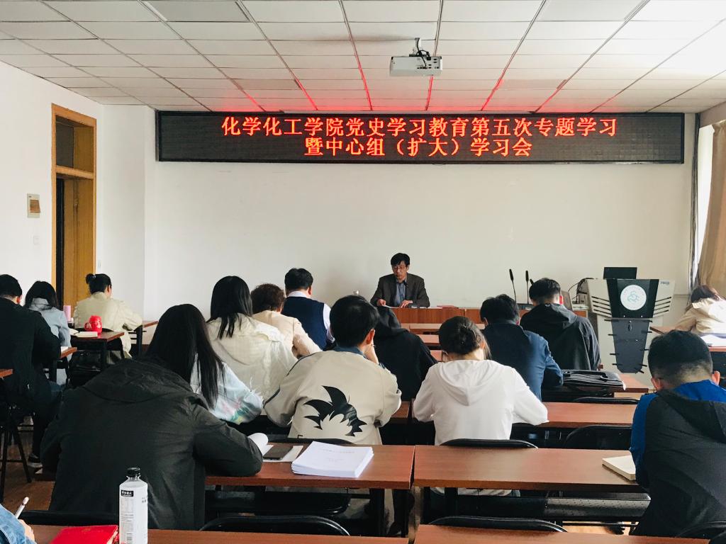 5月7日,yl23455永利官网党委在化工馆313会议室召开党史学习教育第五次专题学习暨中心组(扩大)学习会。学院党委理论学习中心组成员、各党支部书记、系(部、中心)负责人、辅导员参加本次会议。会议由院党委书记来志斌主持。