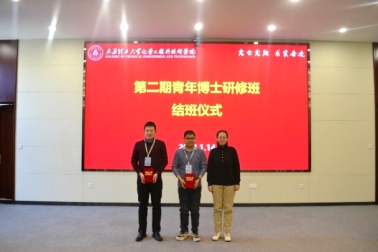 第二期“青年博士研修班”邀请了来自“双一流”高校和国家研究机构化工学科的杰青、长江和“四青人才”等20名专家学者,吸引了众多青年教授和研究生的关注和积极参与。大家对研修班高水平的学习机会非常珍惜,学习积极努力。通过收集每次讲座后的作业,可以看出大家在学习过程中获得了丰富的感悟。本期研修班使得青年教师在学识上有了新积累、见识上有了新拓展、认识上有了新收获。研修班评选出了“优秀班干部”“优秀学员”及“学习之星”,张琤书记和王俊文副院长对本期研修班中表现突出的学员陈杨、冯宇、刘勇军、韩冰莹、张阳、高凤凤、艾培培、权燕红和丁传敏进行了表彰,并颁发证书。