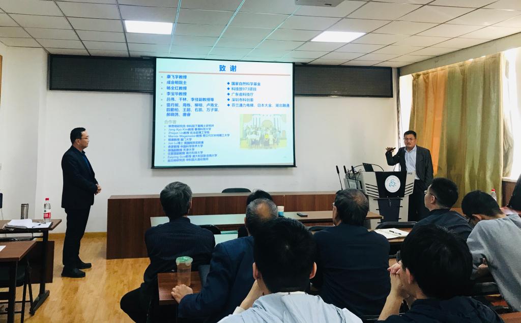 报告中,贺艳兵研究员以高安全动力与储能电池对于新能源和电动汽车等战略新兴产业的重大意义为背景,简单介绍了团队的主要研究内容。贺艳兵研究员从高能量密度和高功率密度锂电池大规模应用的技术瓶颈出发,详细讲解了高安全性锂电池、固体电池、石墨烯导电材料三个方向的研究思路、实验过程和技术成果。在此基础上跟大家分享了当前团队所研究课题的难点、目标和规划。会后,贺艳兵研究员作为太原理工大学的优秀校友,跟大家分享了自己的求学经历和工作经验,并耐心地解答了与会师生提出的问题,现场气氛轻松热烈。