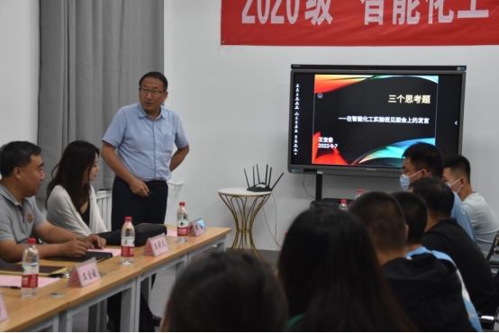 交流会伊始,院长王宝俊以生动活泼的故事引导同学们思考自己回到专业学院后的计划与准备,为同学们讲授了新学期“第一课”。副院长王俊文向同学们介绍了学校“化工+自动化+计算机”教学改革的时代背景和目标要求。张玮老师勉励同学们珍惜宝贵的学习机会,积极向师长请教问题、交流经验。牛艳霞老师向同学们提出两点希望:把握化工本质,确立学习重点;坚持终身学习,积蓄发展能量。