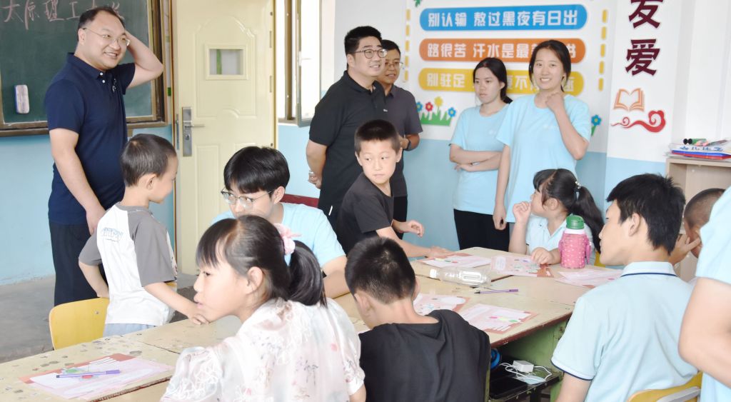 我院赴神池县社会实践队是2024年团中央立项的专项实践队。受学院委托,7月11日,院党委副书记李冬雪、党政办主任李刚森、学工办主任王建云一行赴神池县太平庄联校看望慰问我院“益彩童伴行”志愿服务队,神池县教育局局长李俊、副局长韩瑞专程前往实践点一同参加。李冬雪实地参观了实践场地、了解实践基本情况。座谈会上,在听取了指导老师和队员关于本次实践情况汇报后,他叮嘱队员们要不断加强团队凝聚力,以更加饱满的工作热情和昂扬斗志持续开展活动,在实践中培养社会责任感、创新精神和家国情怀。