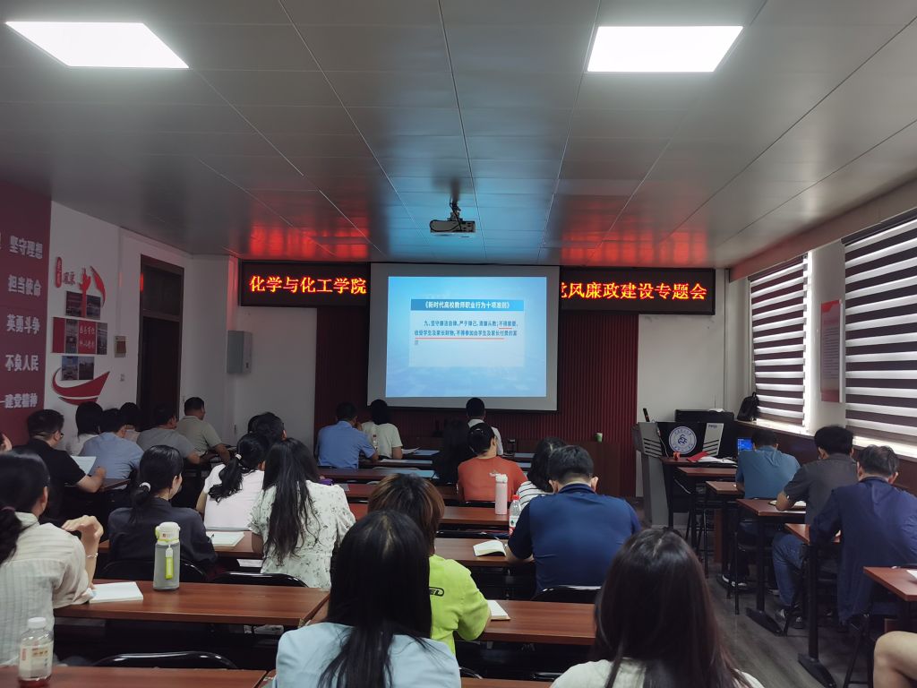 为进一步加强师德师风建设,全面提升教师思想政治素质和职业道德水平,5 月 21 日下午,学院在化工馆三层会议室召开党风廉政建设暨师德师风专题学习会。学院中心组成员、各部门负责人、各支部书记、专职组织员、工会主席及全体教师参会,会议由院党委书记张琤主持。